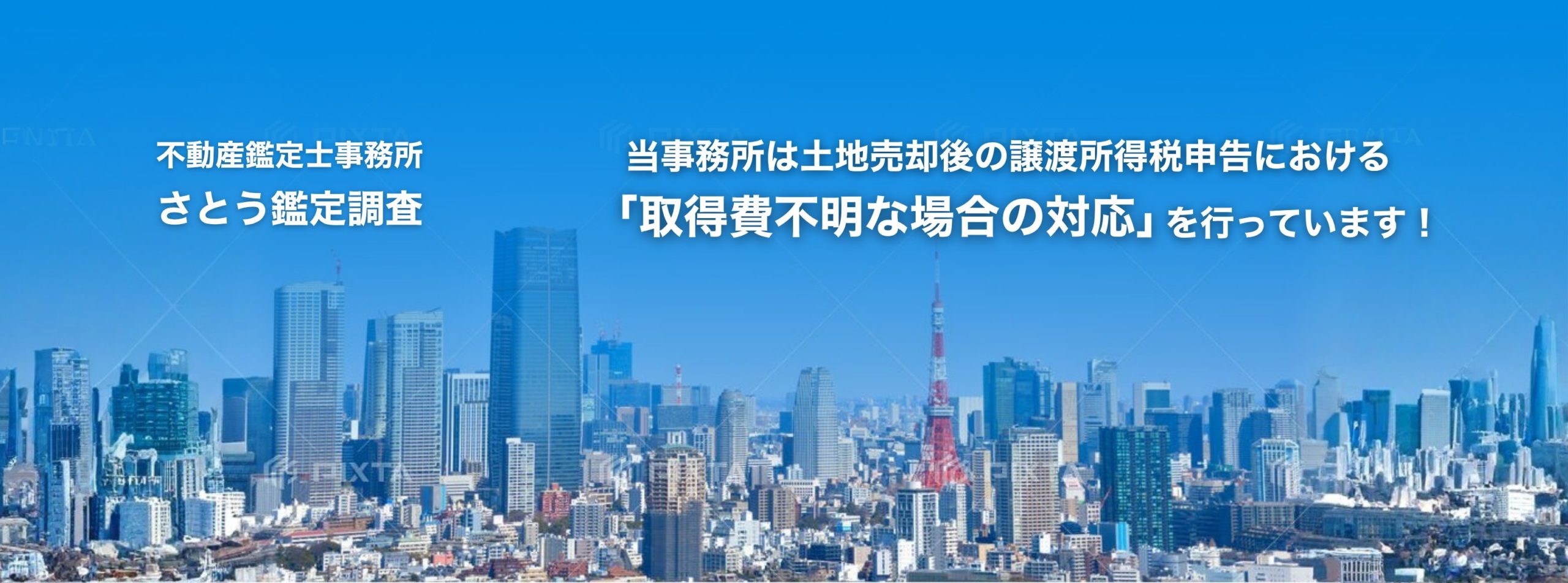 当事務所は土地売却後の譲渡所得税申告において取得時の契約書が見当たらない場合(い わゆる取得費不明な場合)の対応をしています。税理士様、不動産業者様からの依頼も多く、 社会的ニーズが高まりつつある分野です。